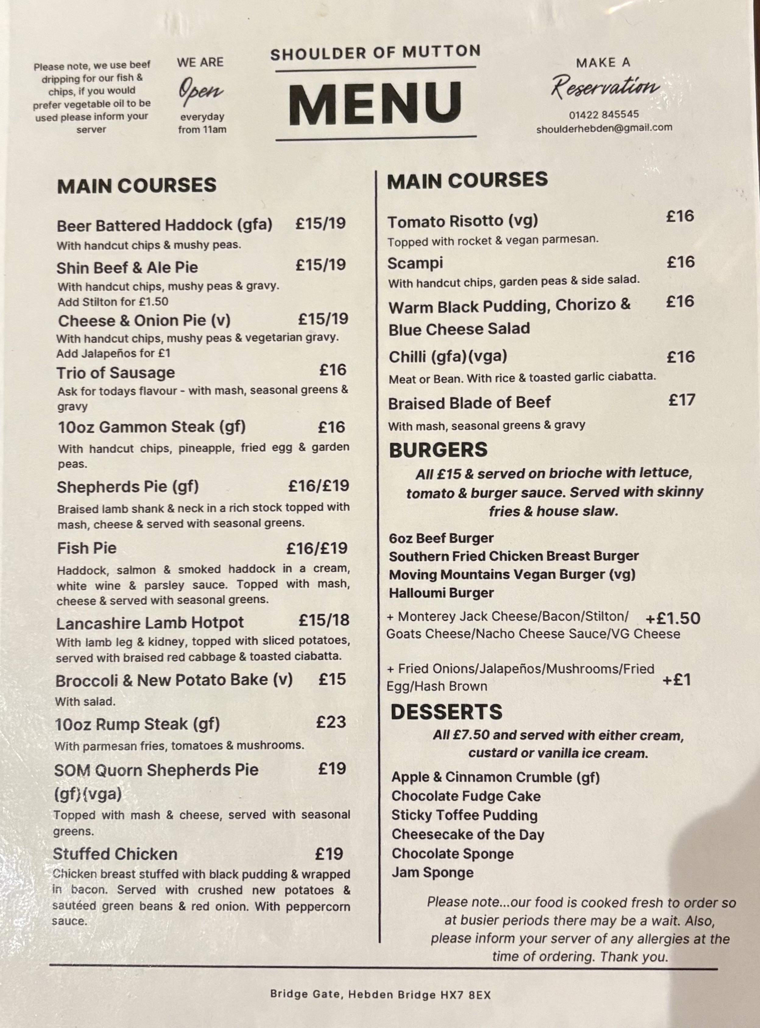 To keep up with changing habits we offer a portion of our menu for take aways, offering our premium, home made menu to compete with local takeaway offers. All of our produce is bought locally.