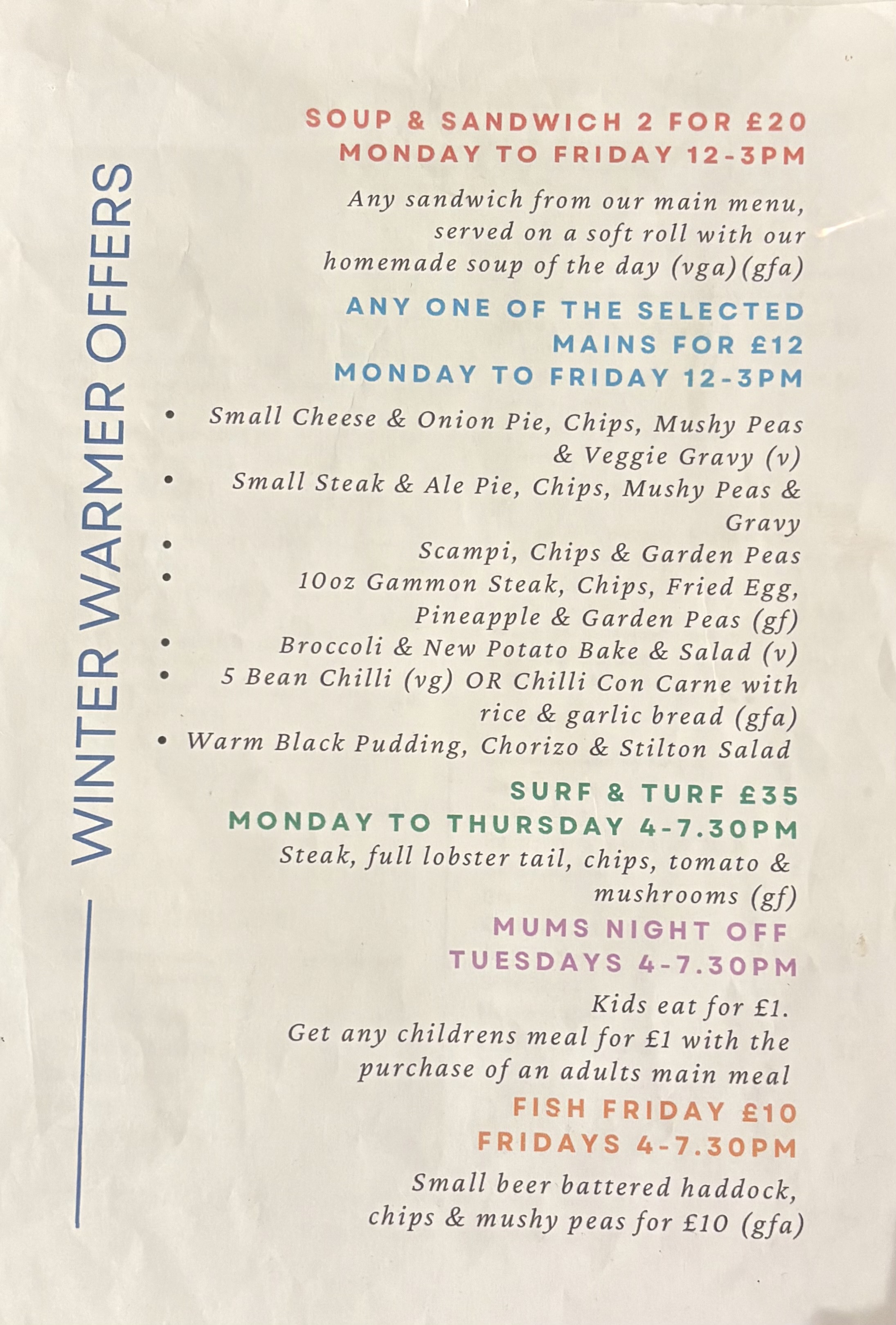 Steak & ale or Cheese & onion pie served with Chips, mushy peas & proper gravy.